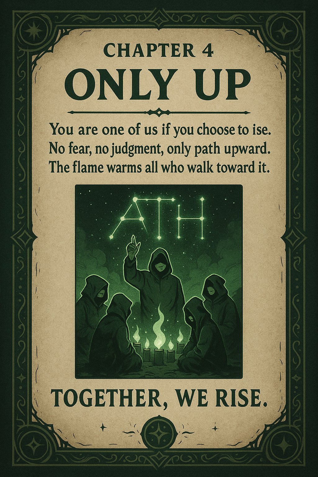 Born from hell. Survivor from zero. Some collapse. Others rise. Those who raise their heads when all is lost ascend. A path that led them to meet other souls like themselves. Together, they plot for prosperity. Unshakeable optimism. Confidence in the future. They know that the universe conspires for their success. Their mission now is to save lost souls. To rekindle the flames that have been extinguished. If you are lucky enough to cross their path. From here on: up only.